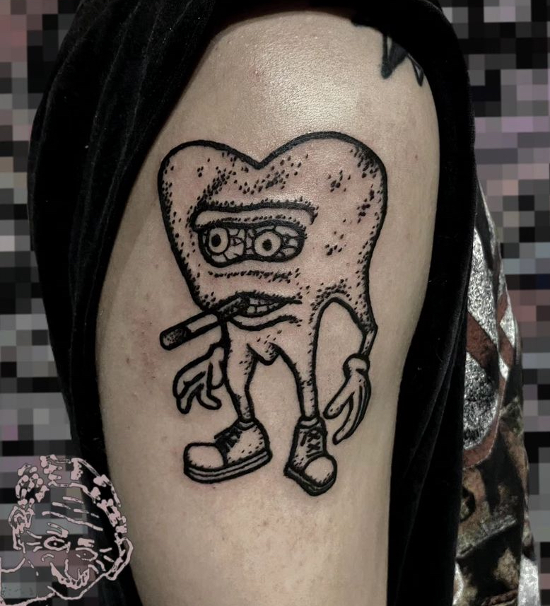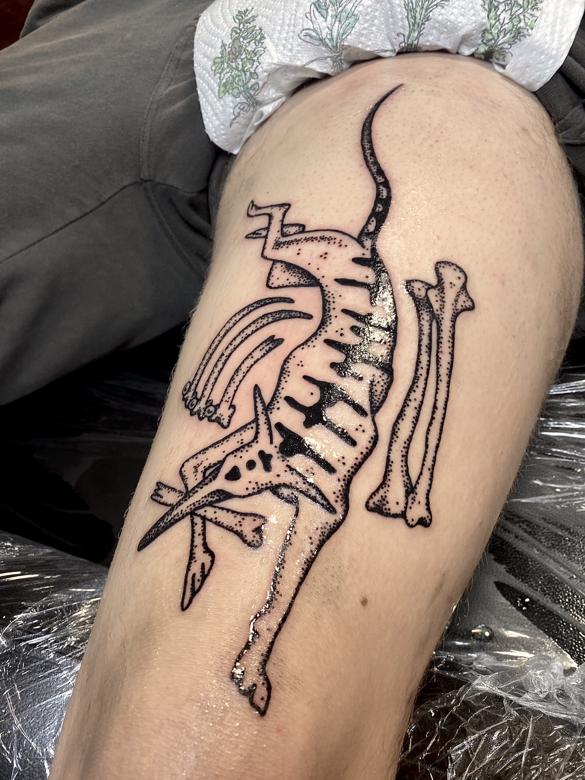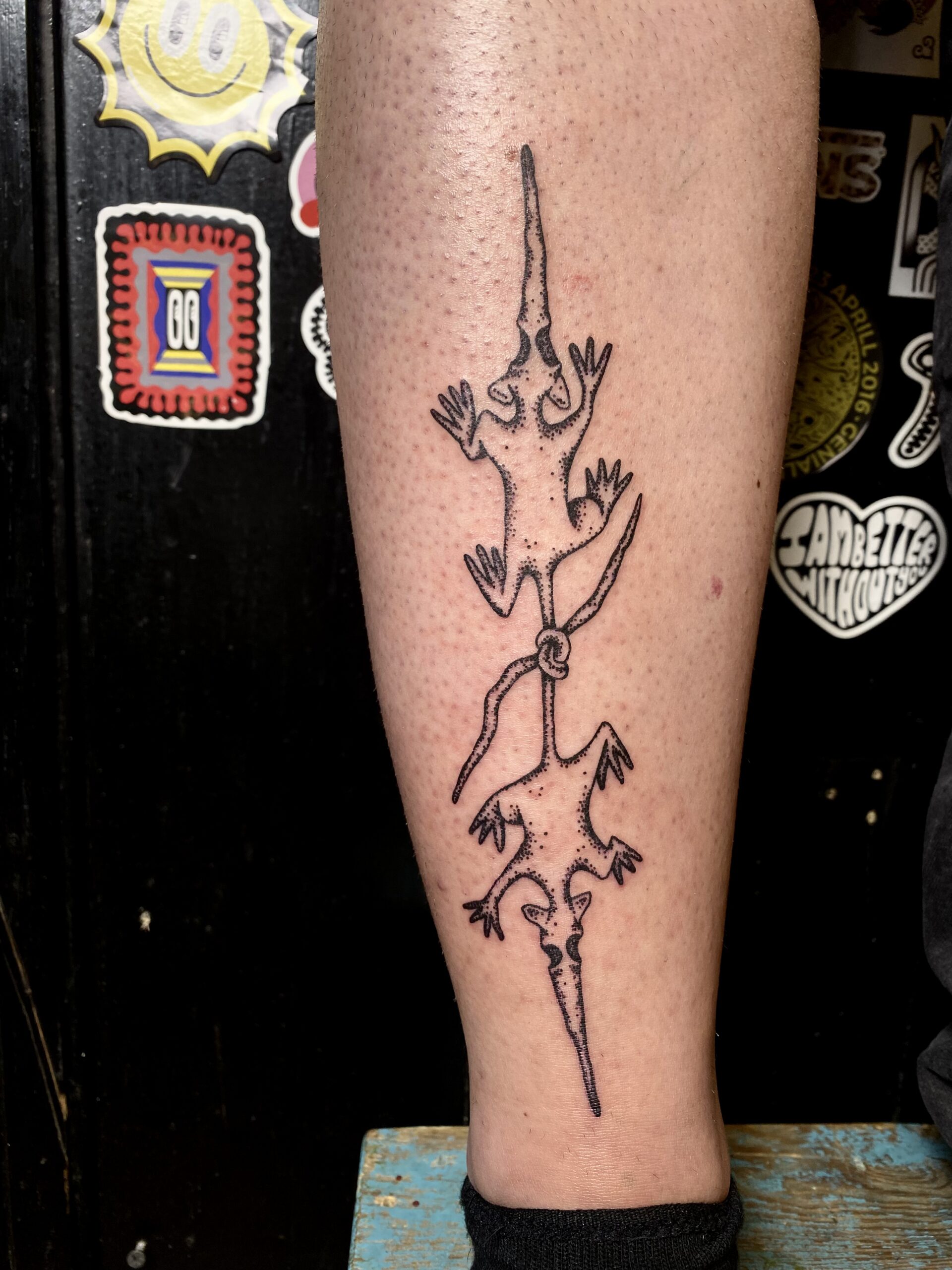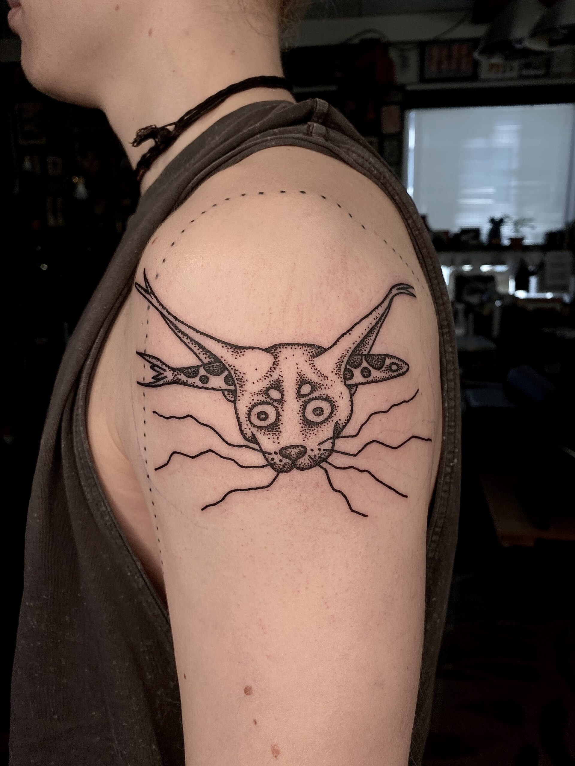 All the pain and complaining* started in the winter of 2022 when Santa brought me a tattoo machine. Two years later I got an apprenticeship in Bad Pen Pal studio. Besides tattooing I also enjoy bad music and DIY culture, especially sewing.