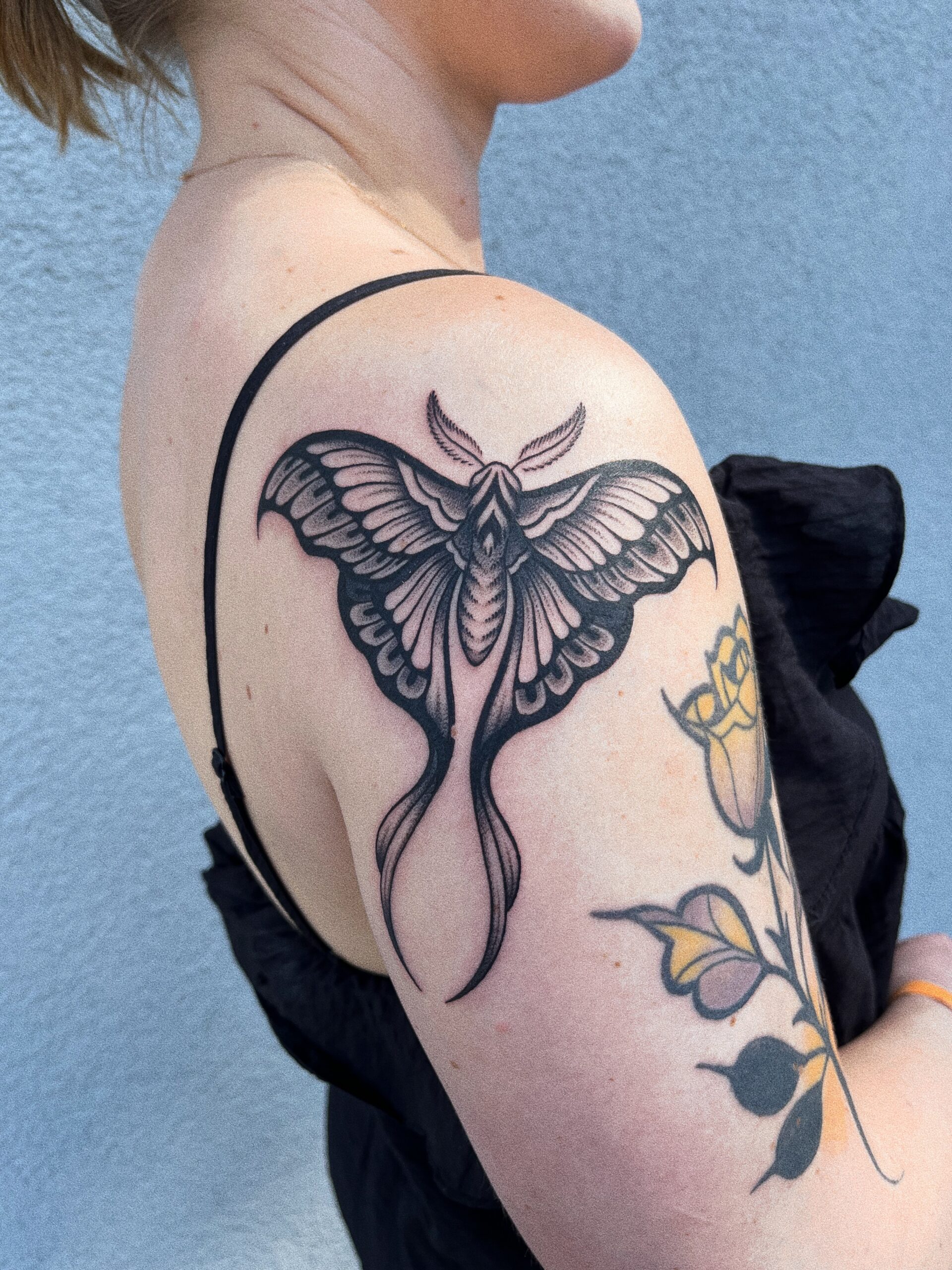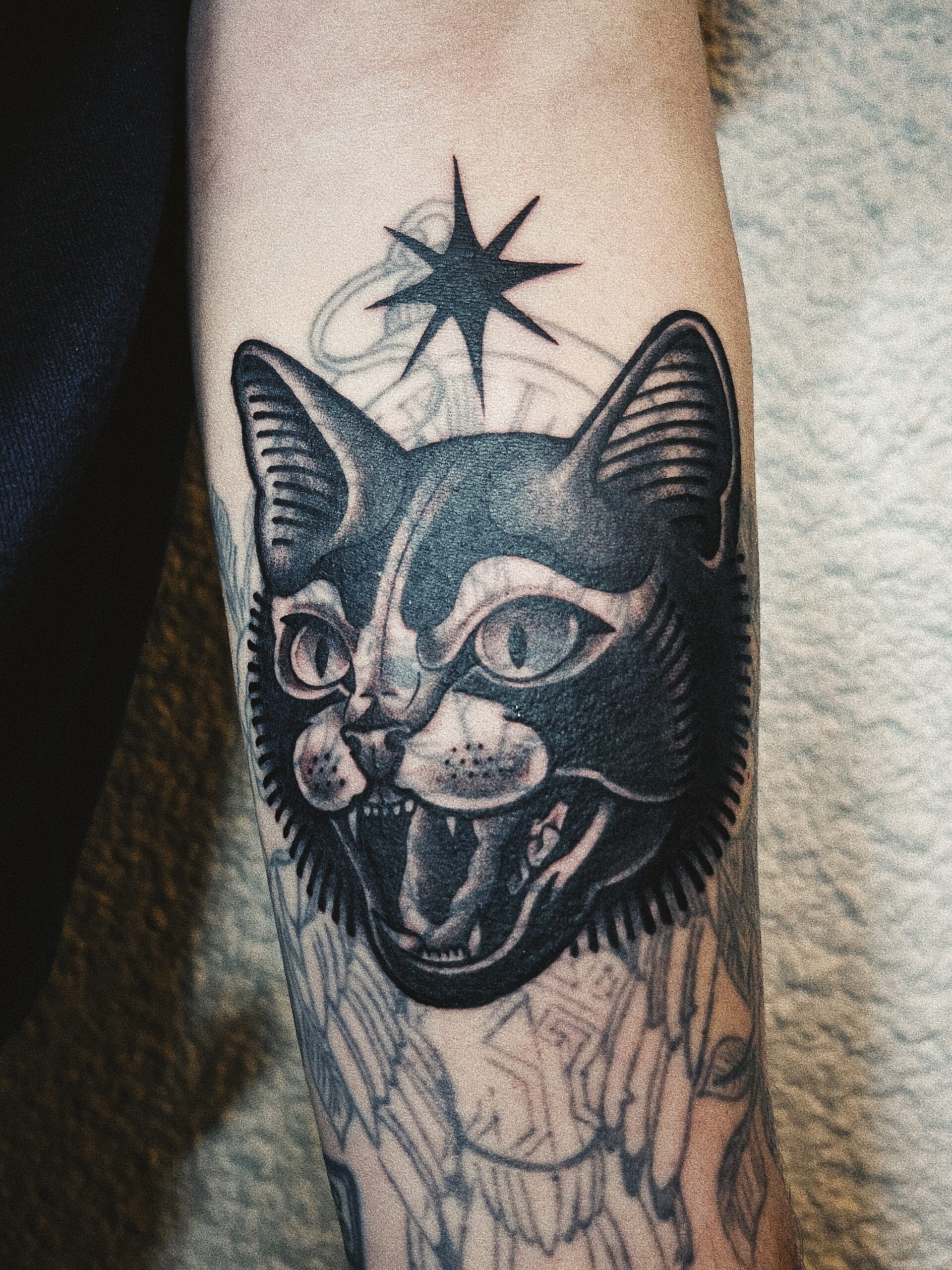 I’ve been tattooing for 5 years now, in mostly graphic illustrative style. Animal, bird and bug related tattoos are more than welcome. Also, I would really love to make some more ornamental geometric blackwork stuff and since I started my journey with handpoking it’s still something I really enjoy working on.
