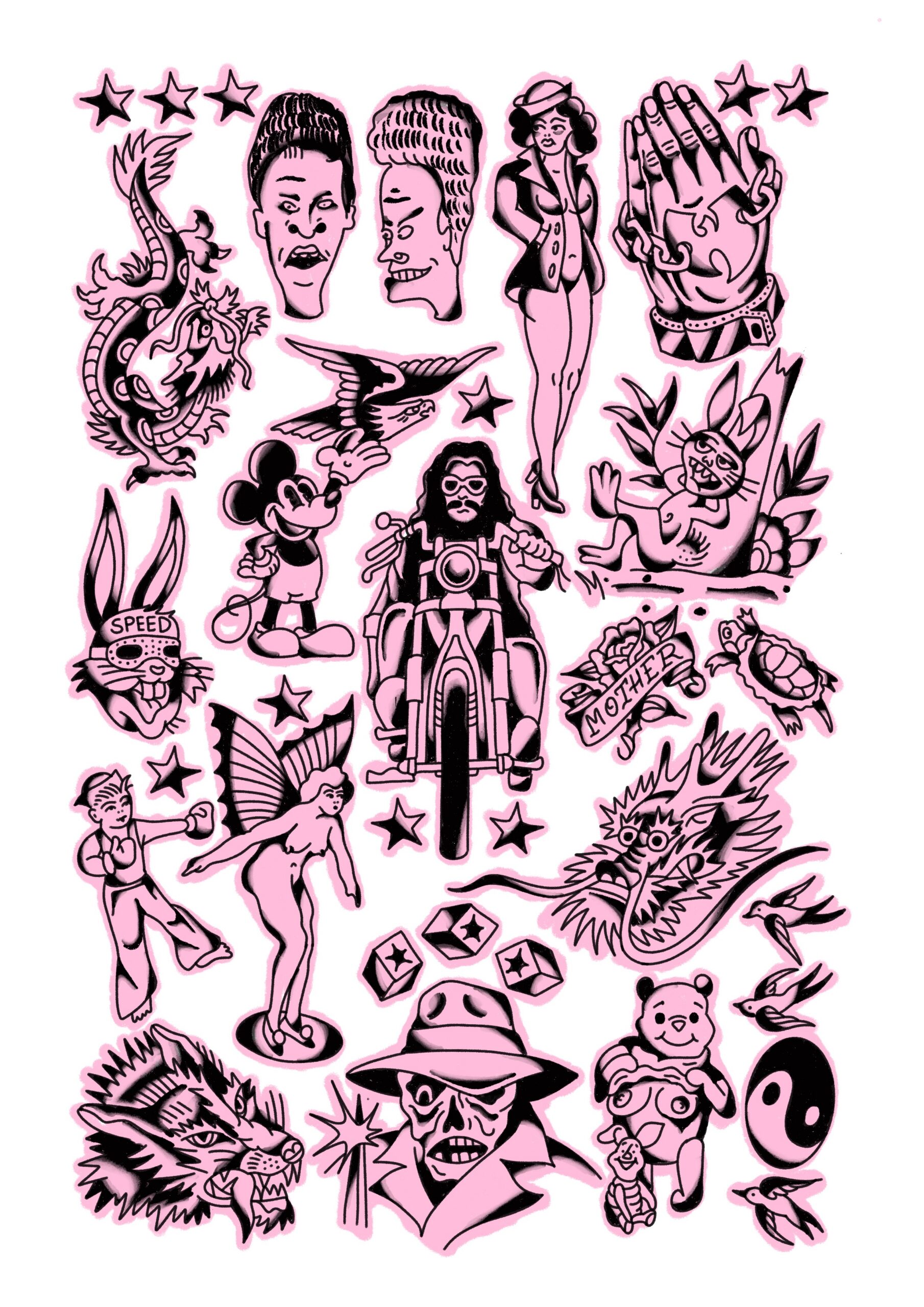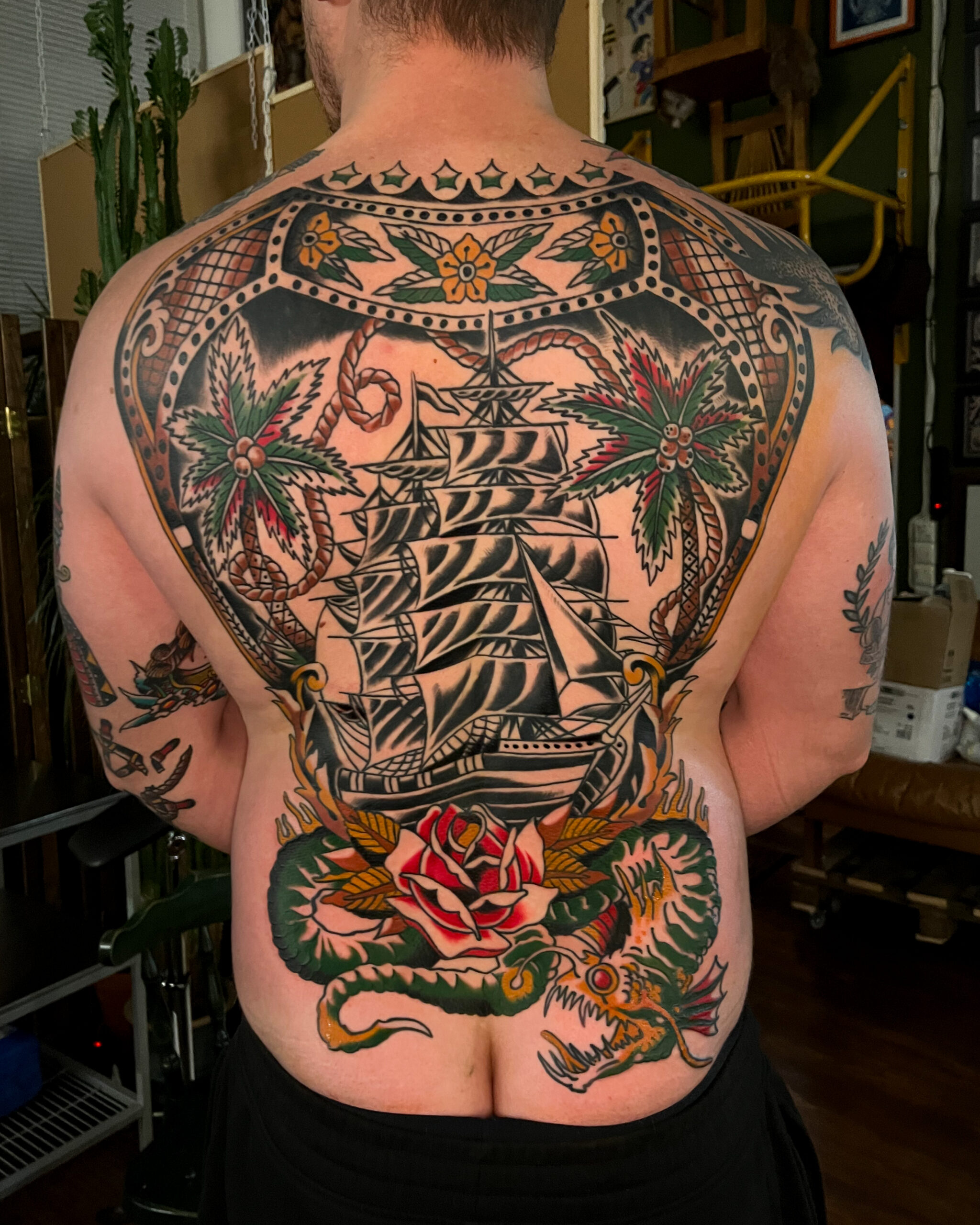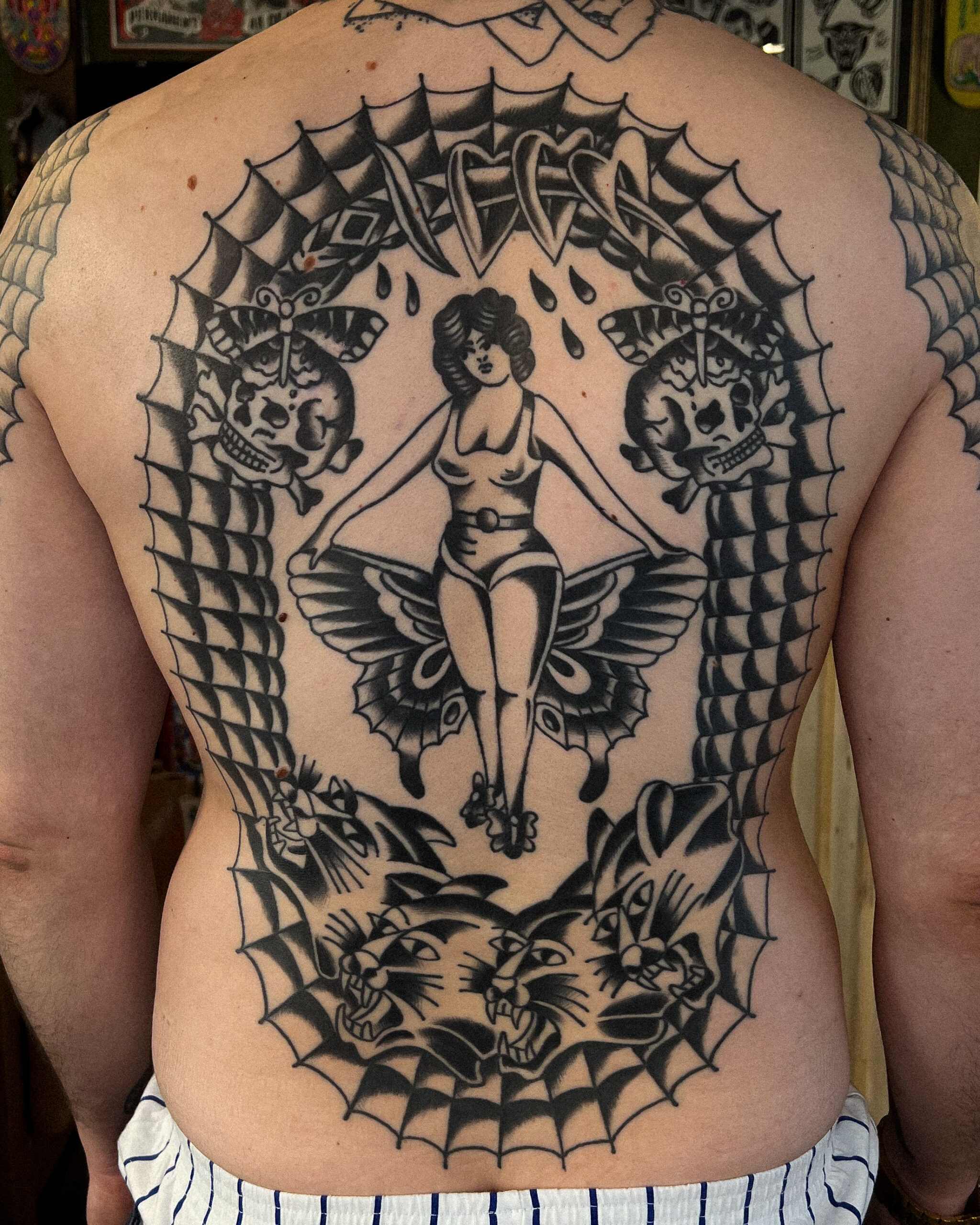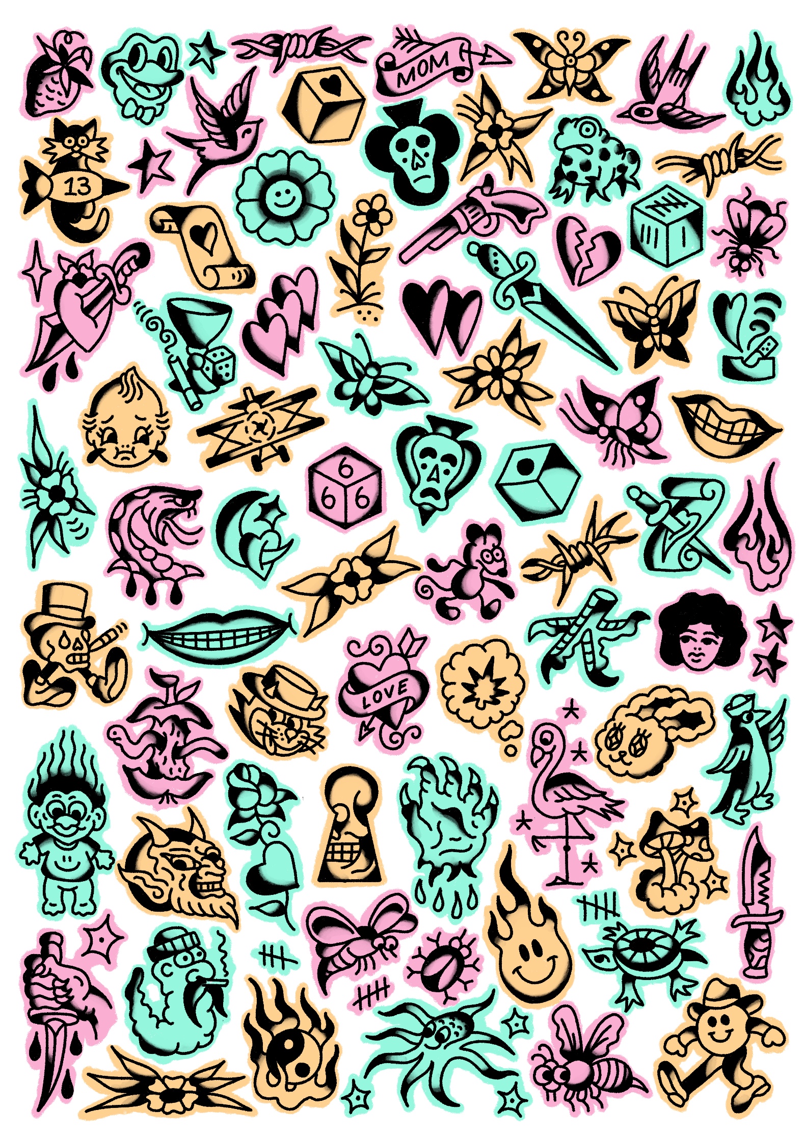I really love doing large-scale projects, full sleeves and backpieces — but I also have a whole bunch of flash to choose from, if you prefer something small or medium-sized. And I’m always happy to draw custom designs, silly or serious.