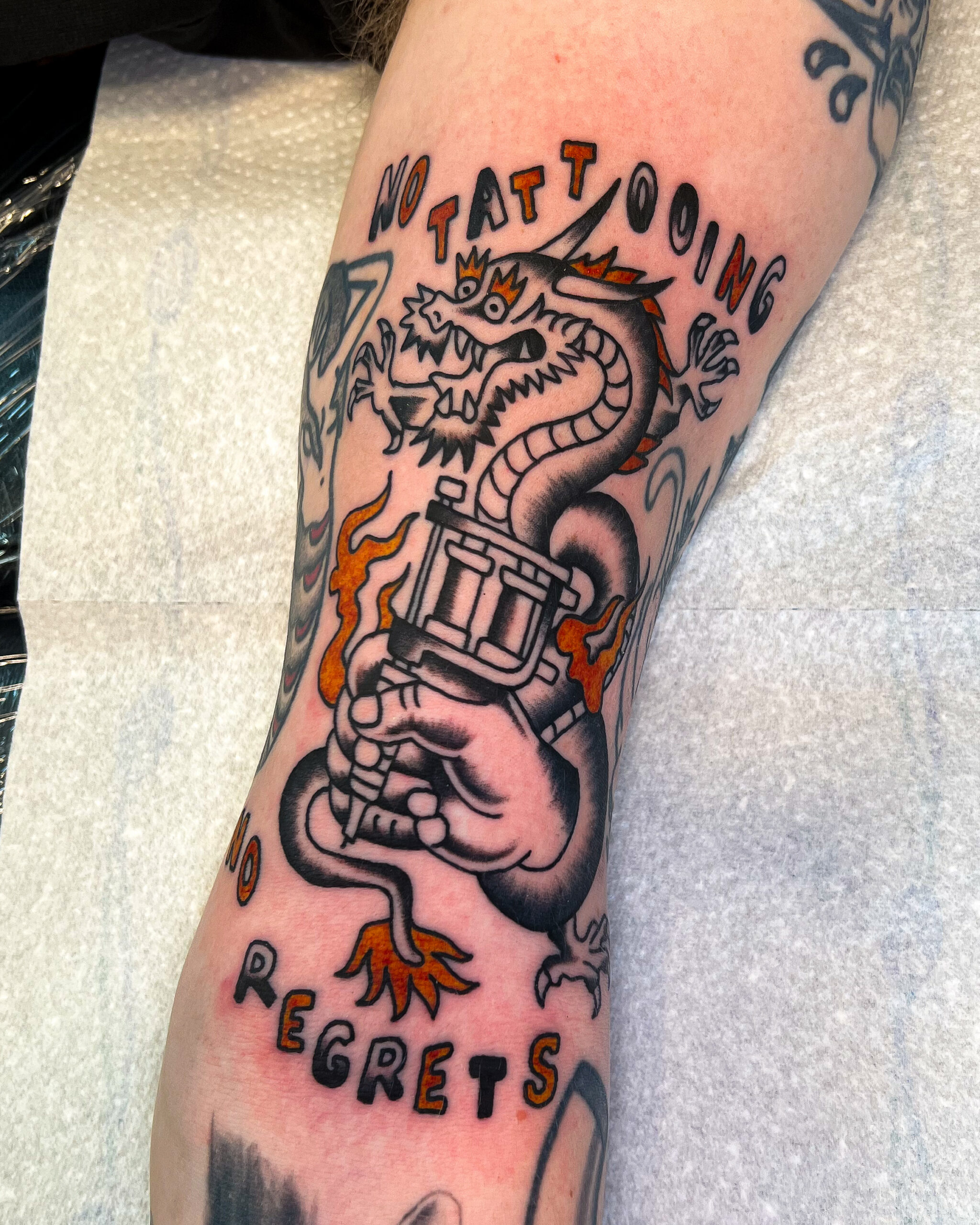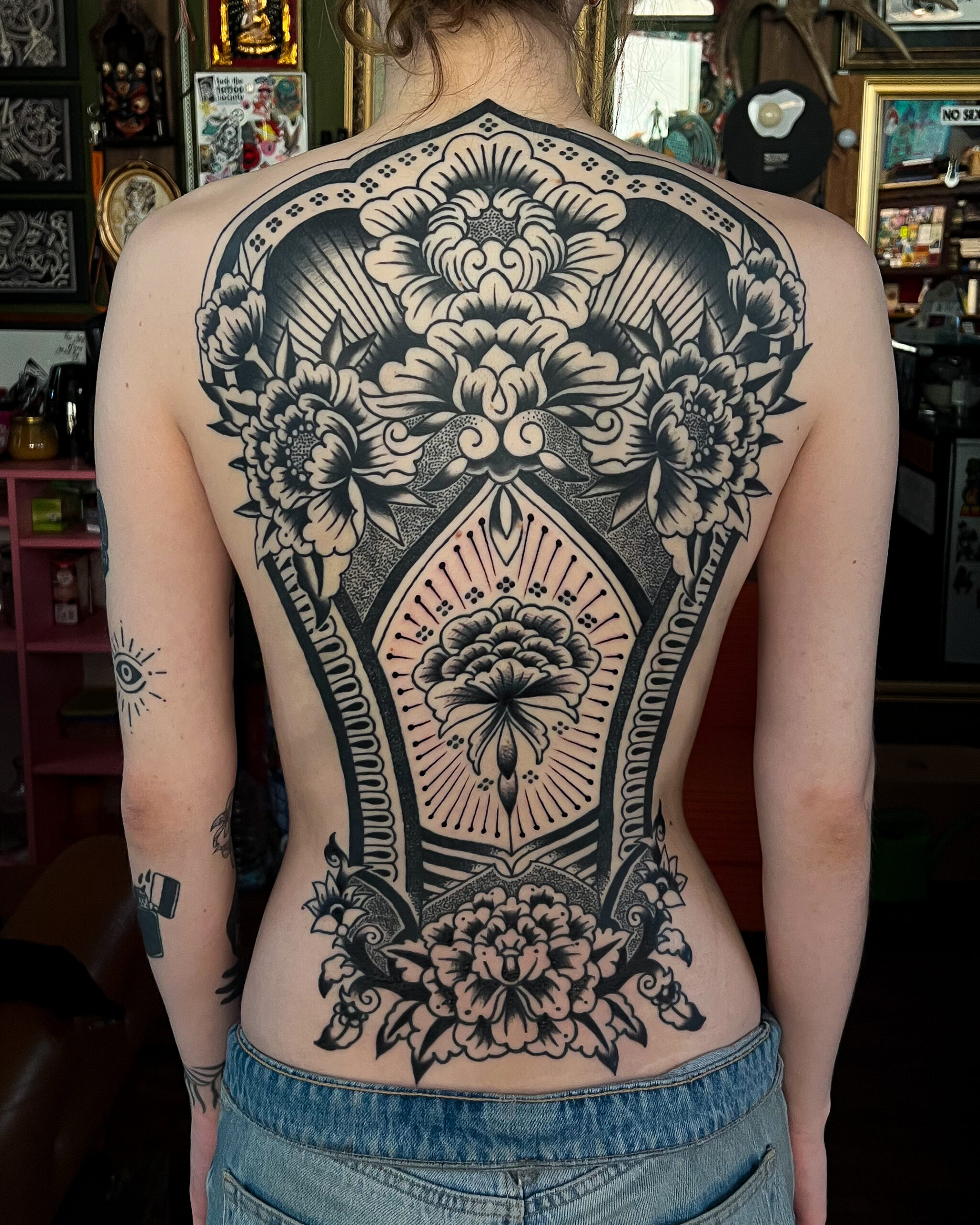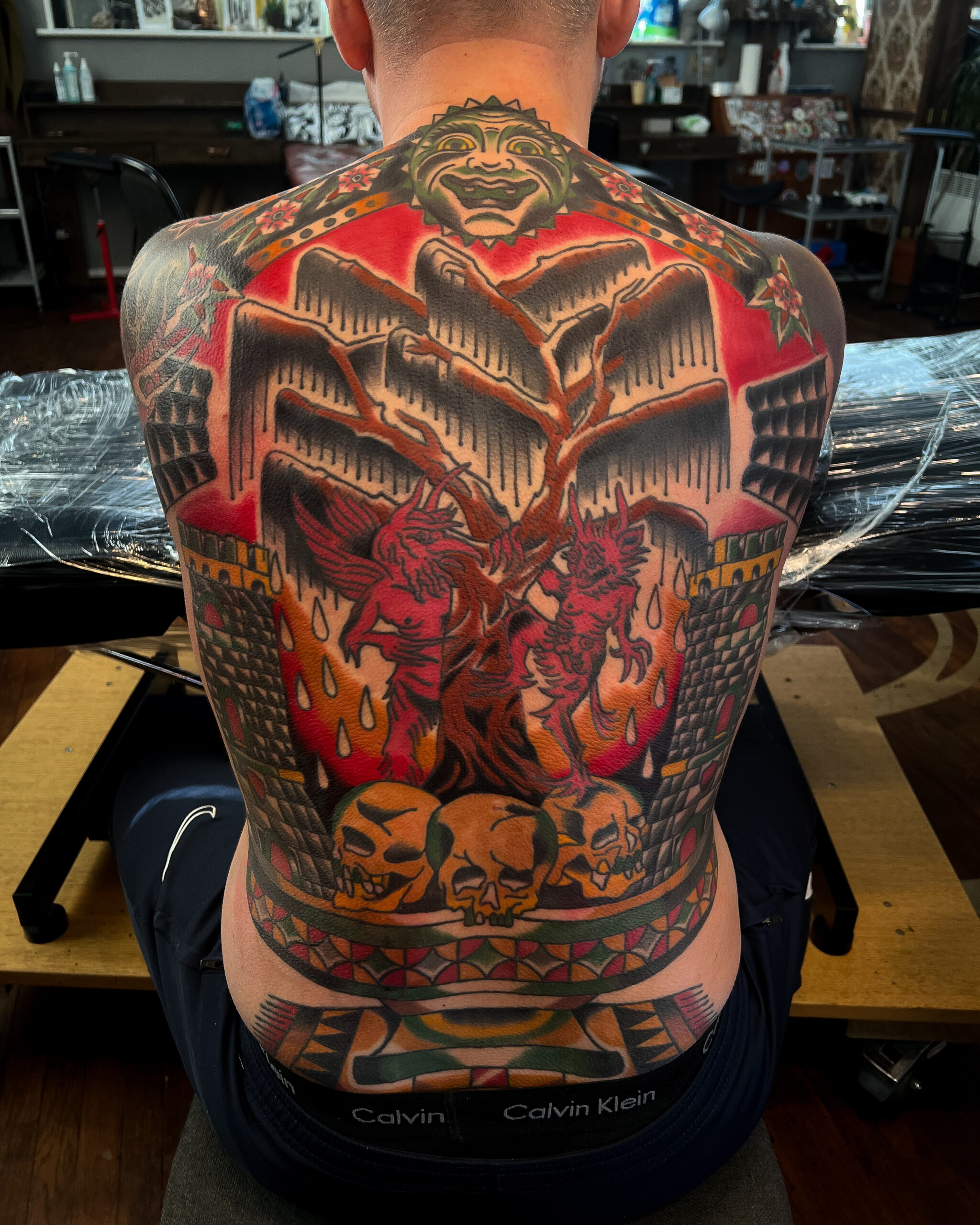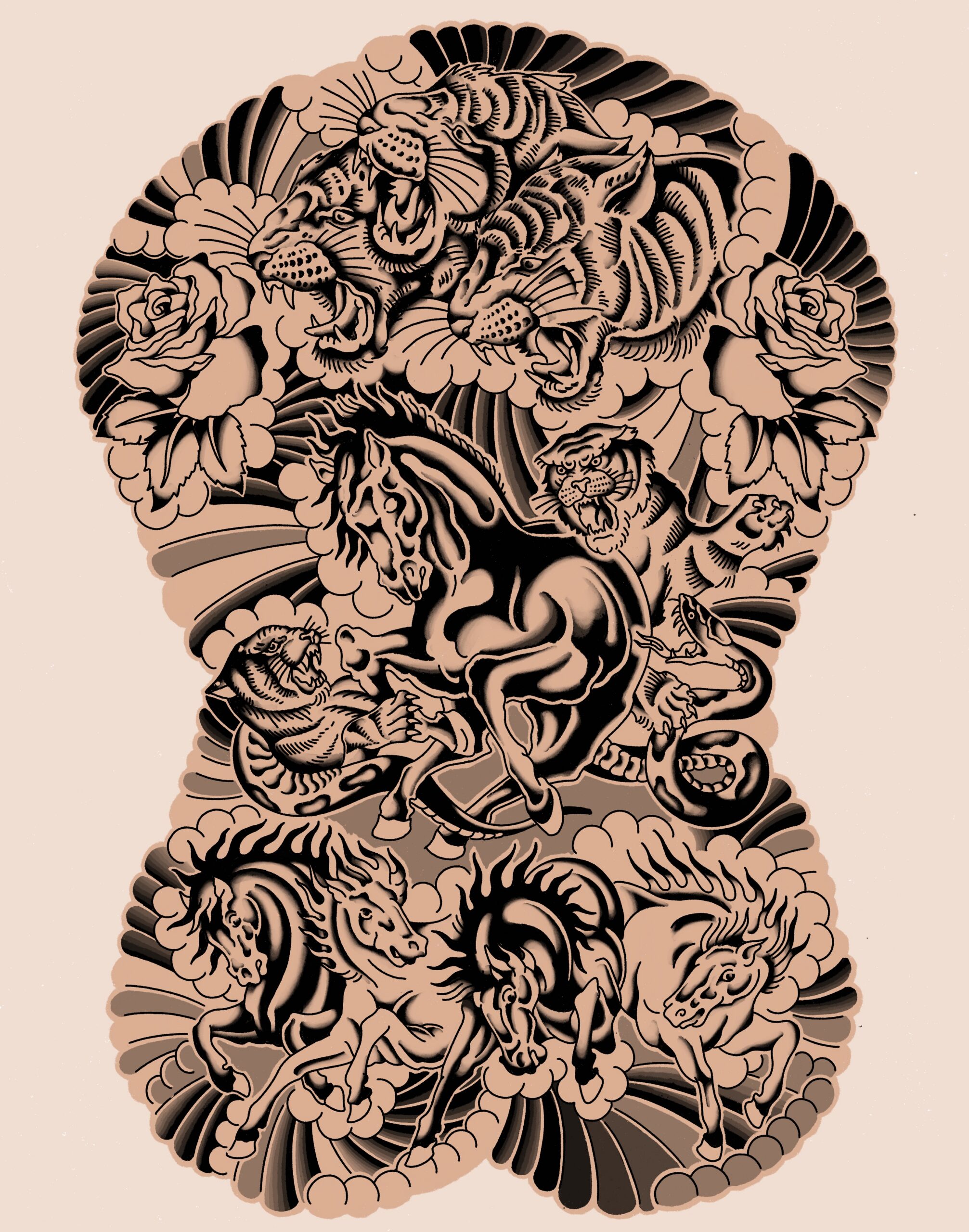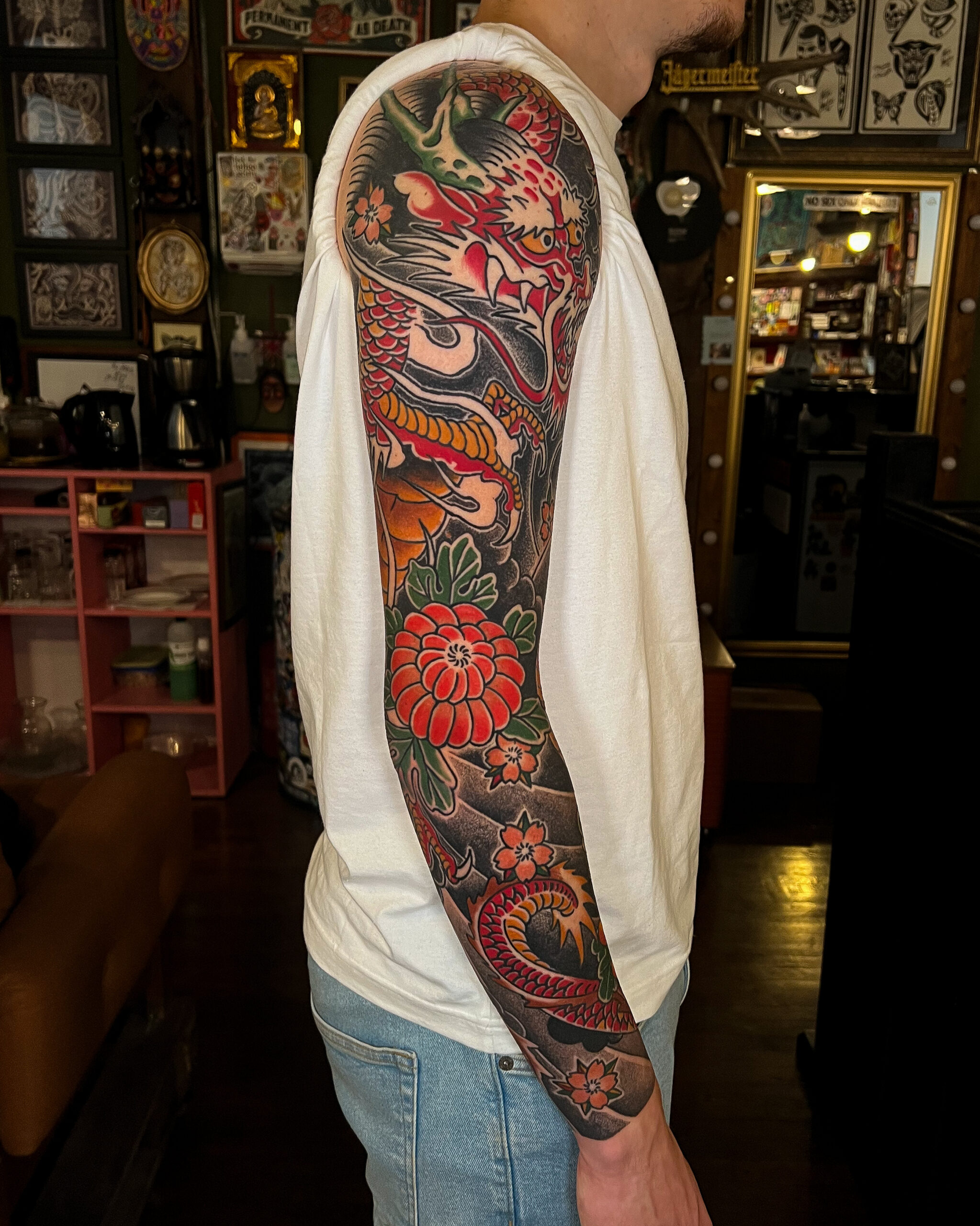 I really love doing large-scale projects, full sleeves and backpieces — but I also have a whole bunch of flash to choose from, if you prefer something small or medium-sized. And I’m always happy to draw custom designs, silly or serious.