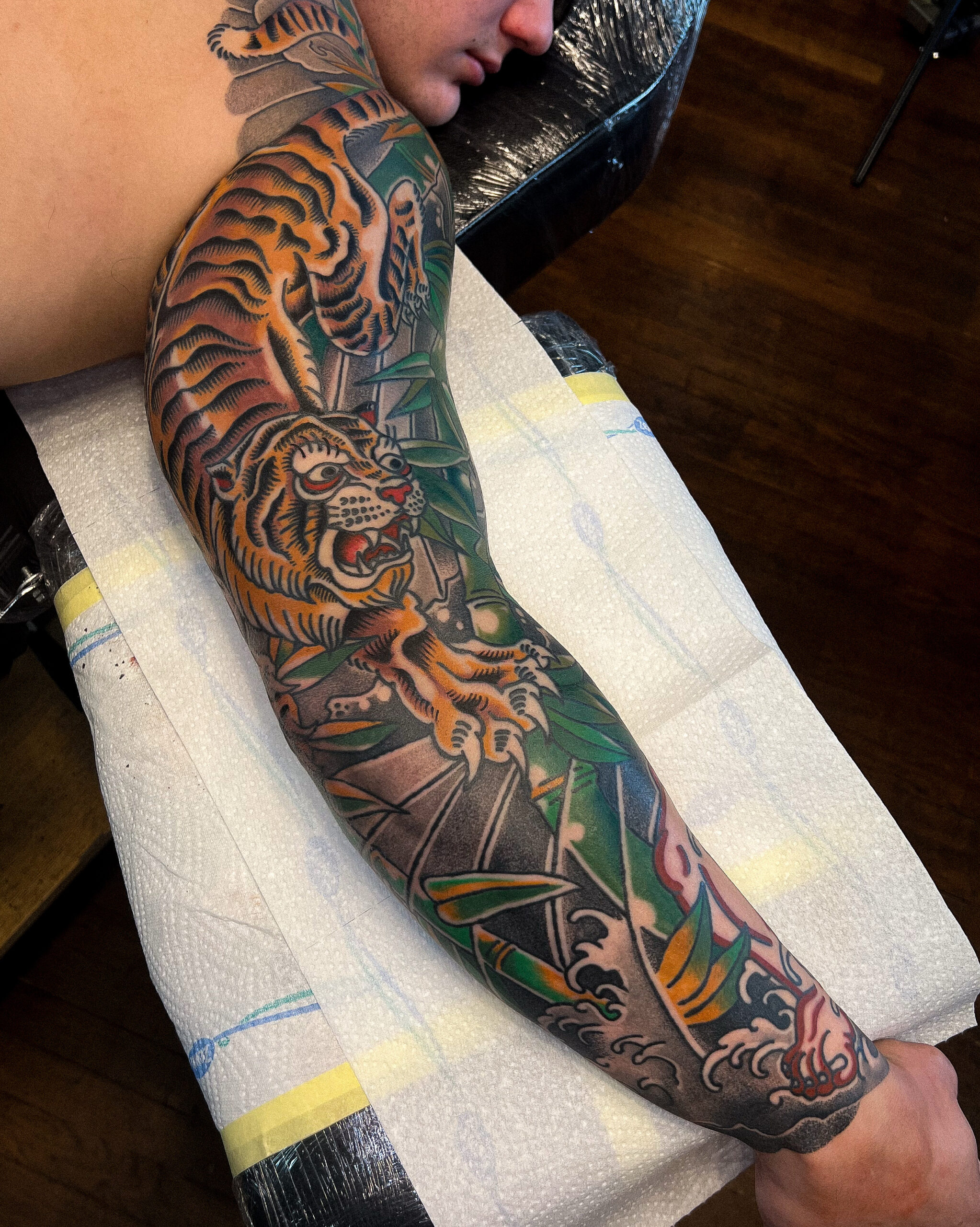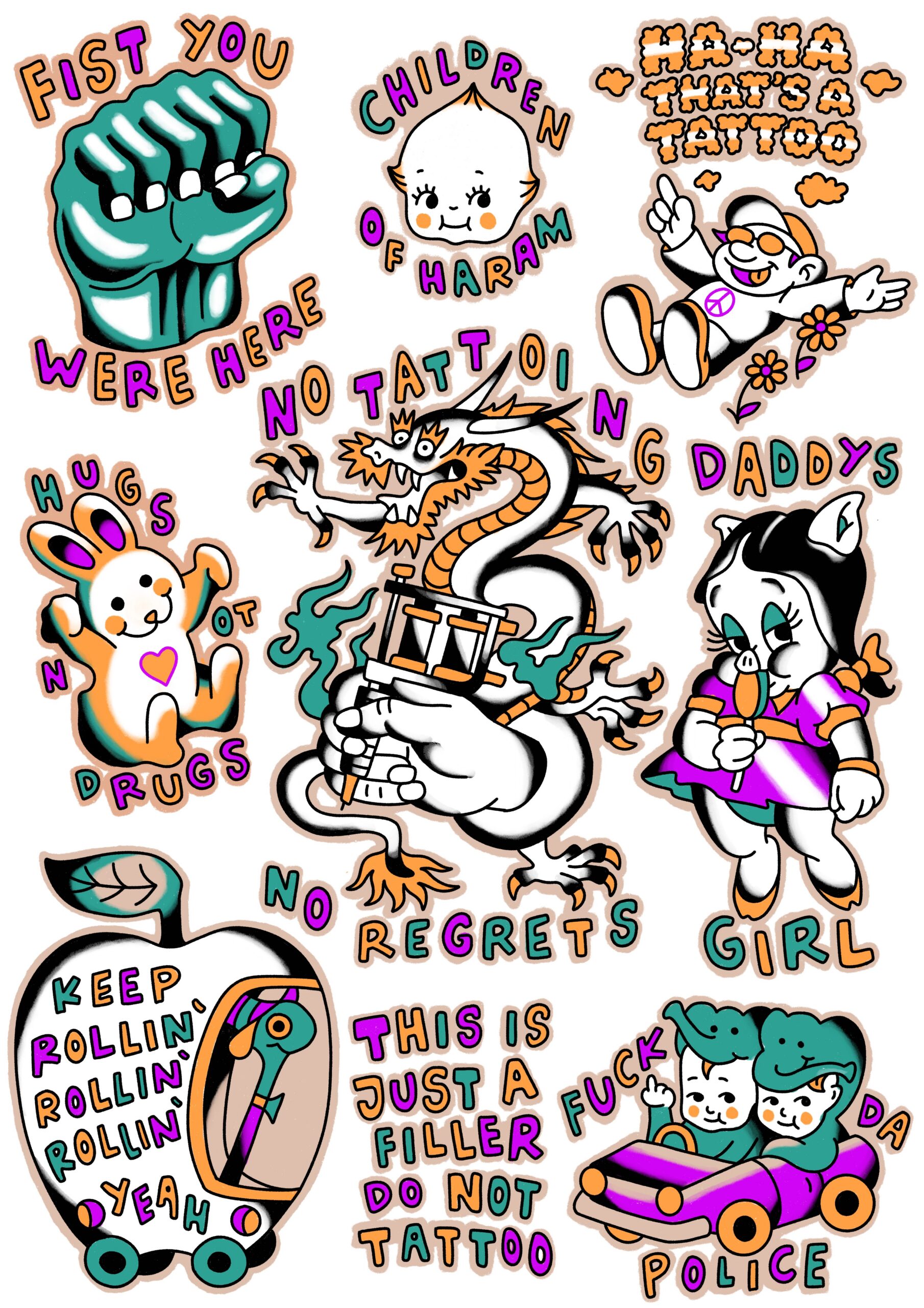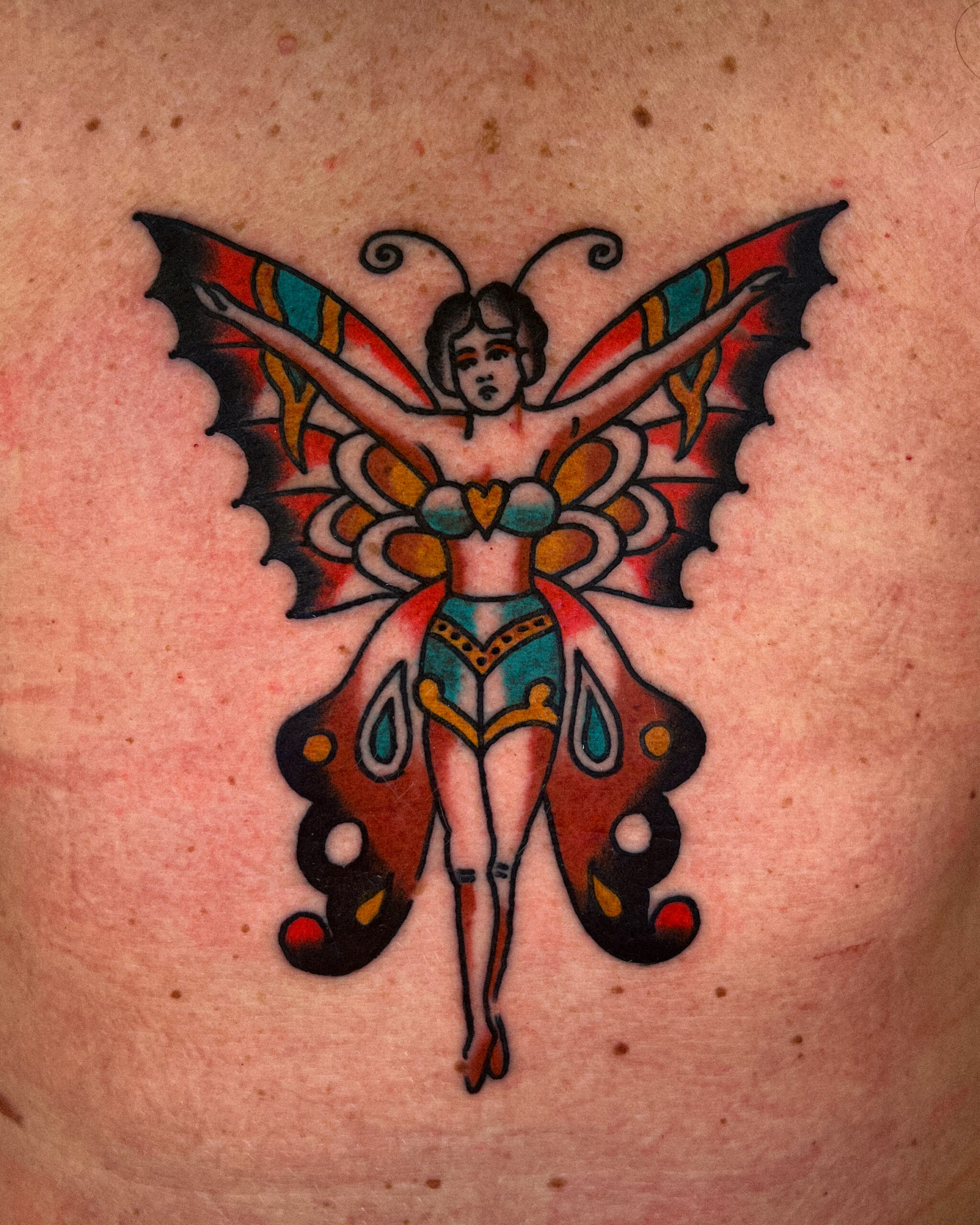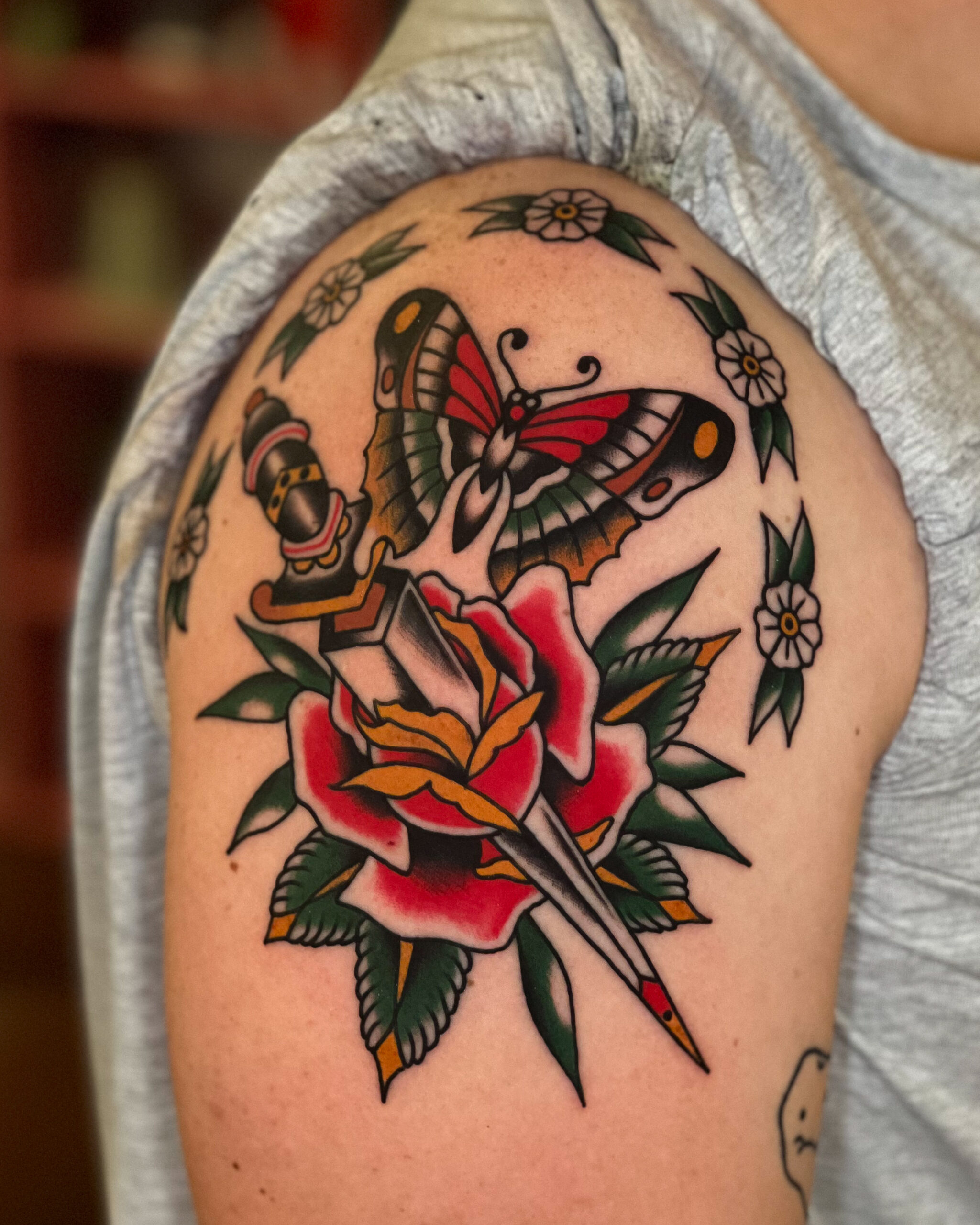 I really love doing large-scale projects, full sleeves and backpieces — but I also have a whole bunch of flash to choose from, if you prefer something small or medium-sized. And I’m always happy to draw custom designs, silly or serious.