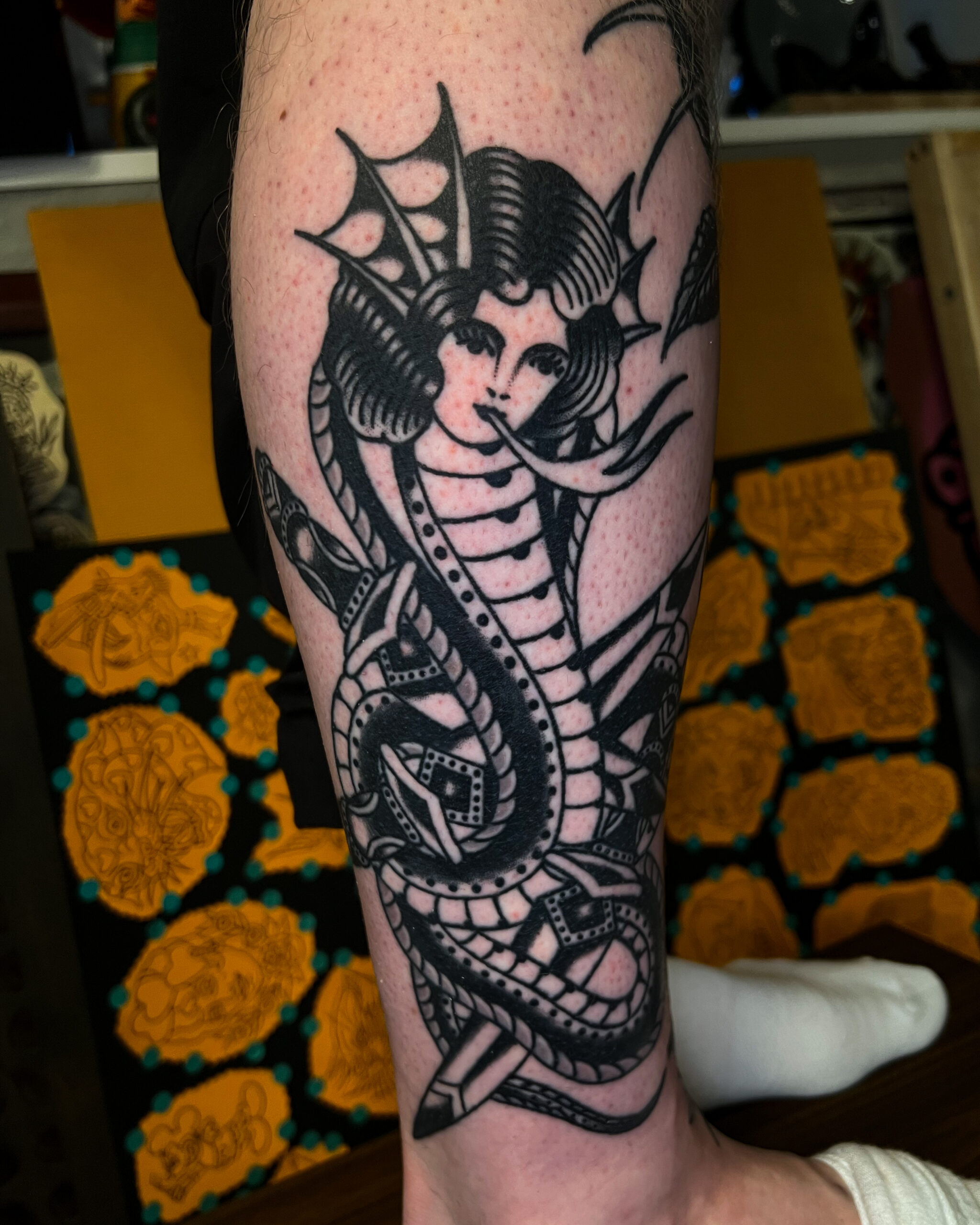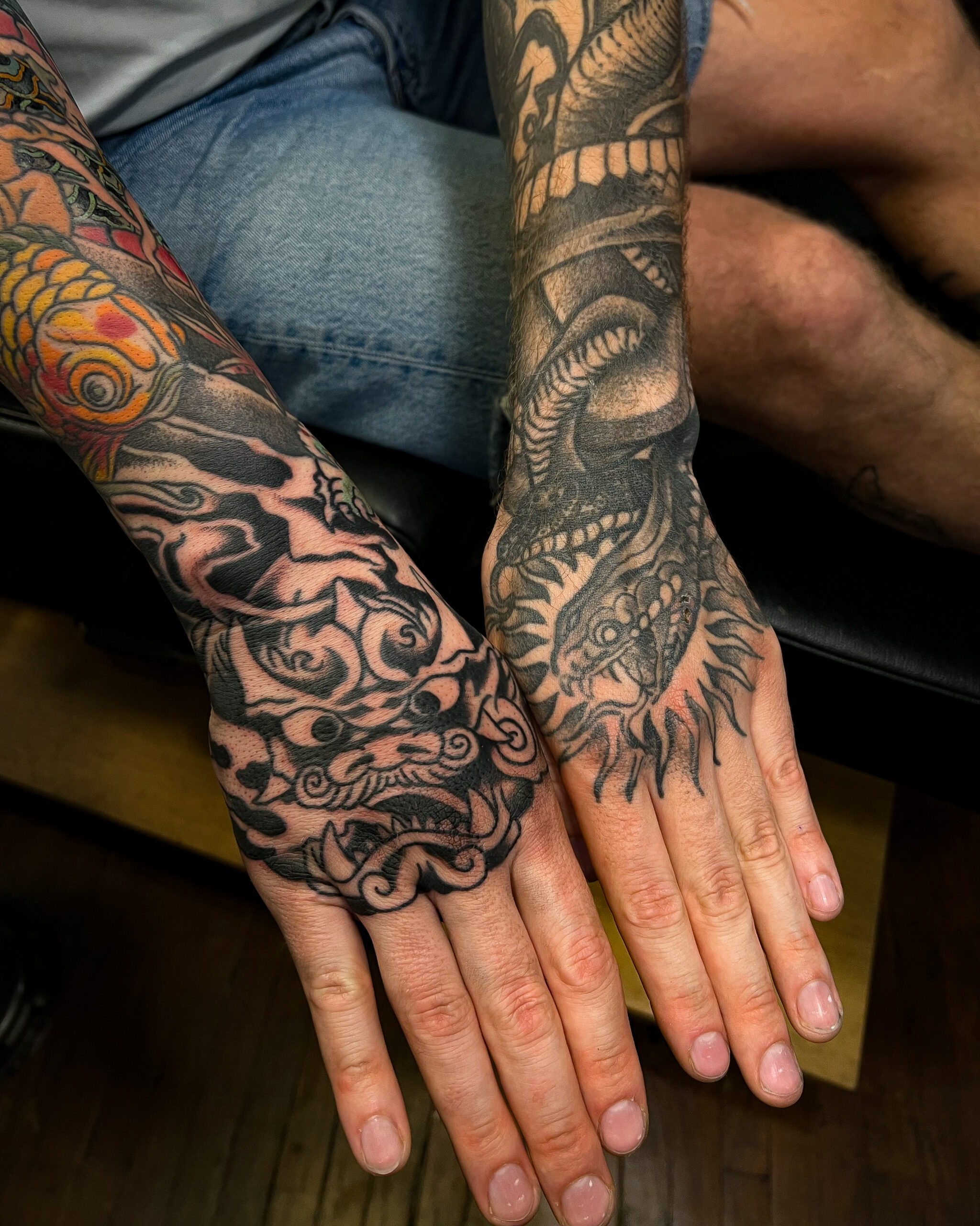 Resident Cowboy. Been tattooing since 2008 and worked in various studios, before founding Bad Pen Pal in 2016. Since then I’ve mostly been focused on traditional and Japanese influenced tattoos. Bold lines, vibrant and solid colors.