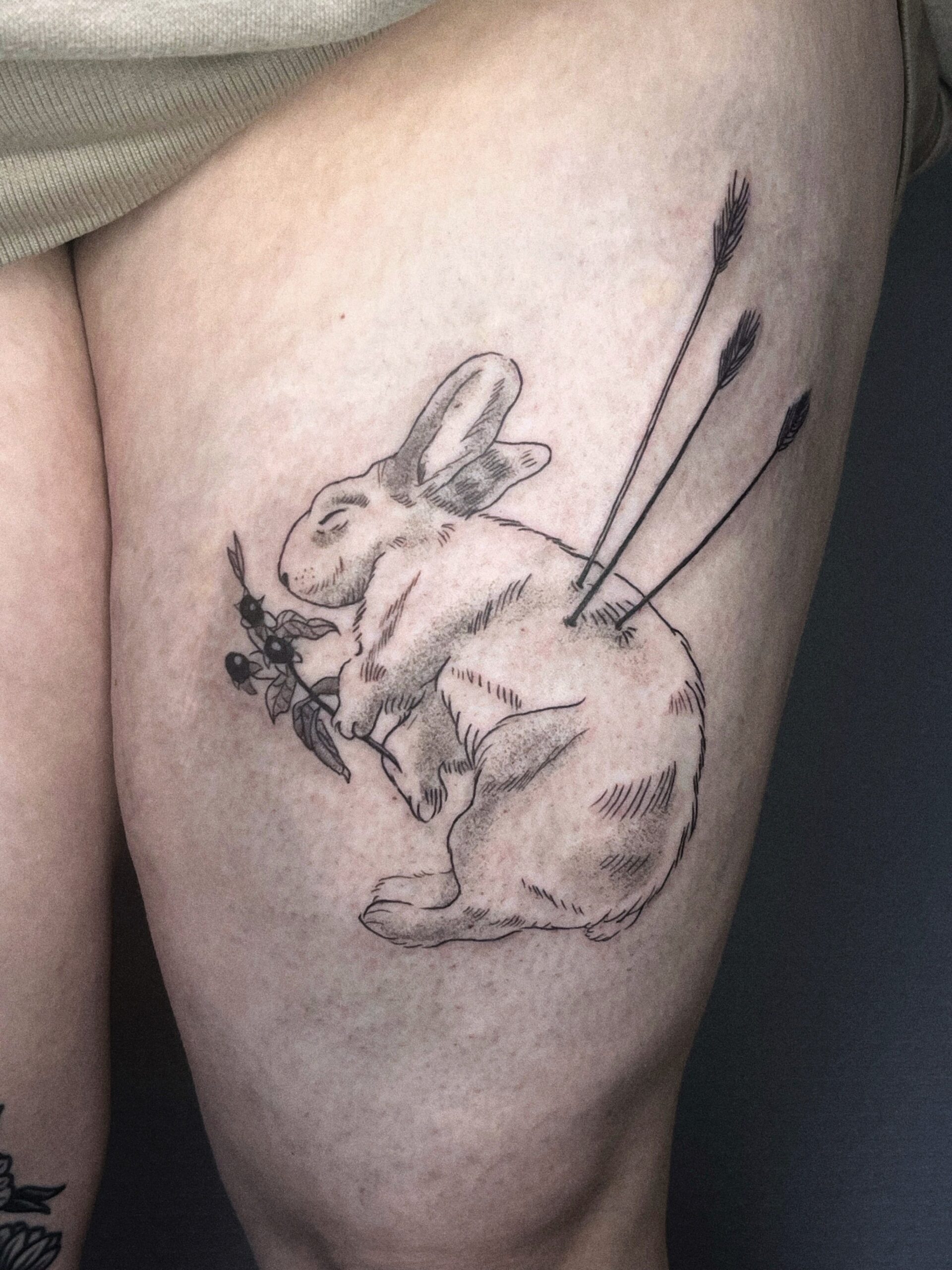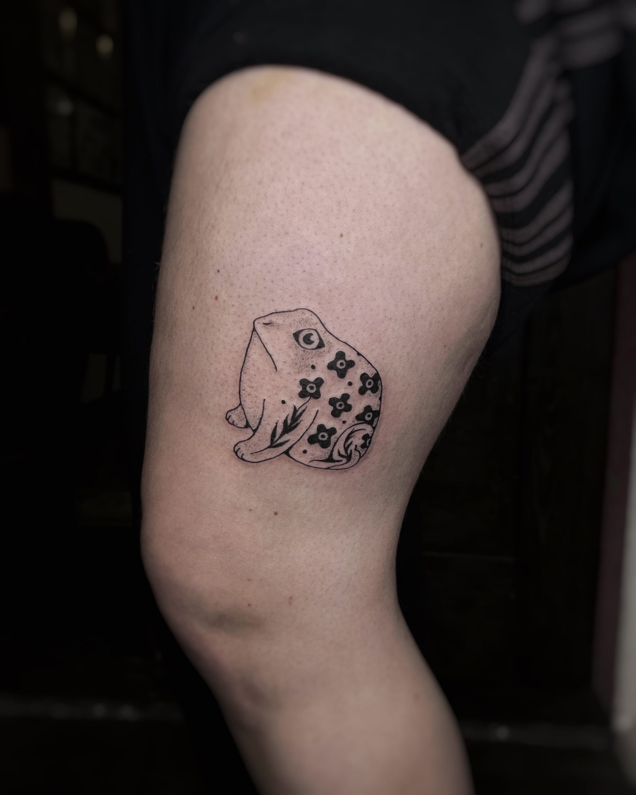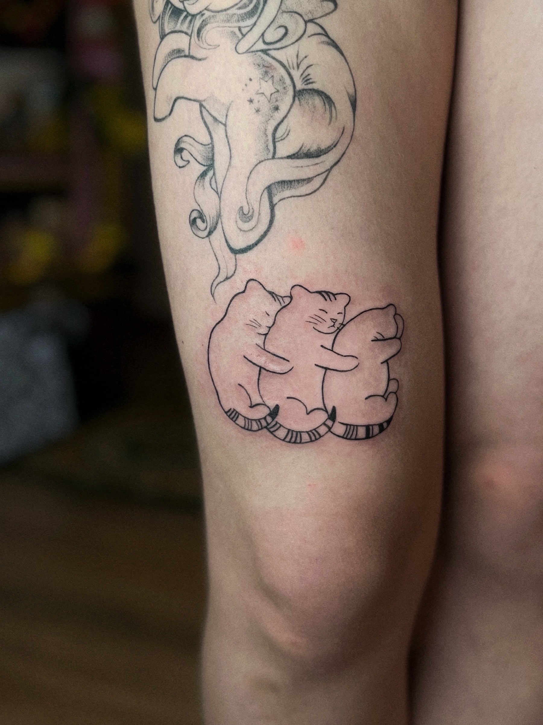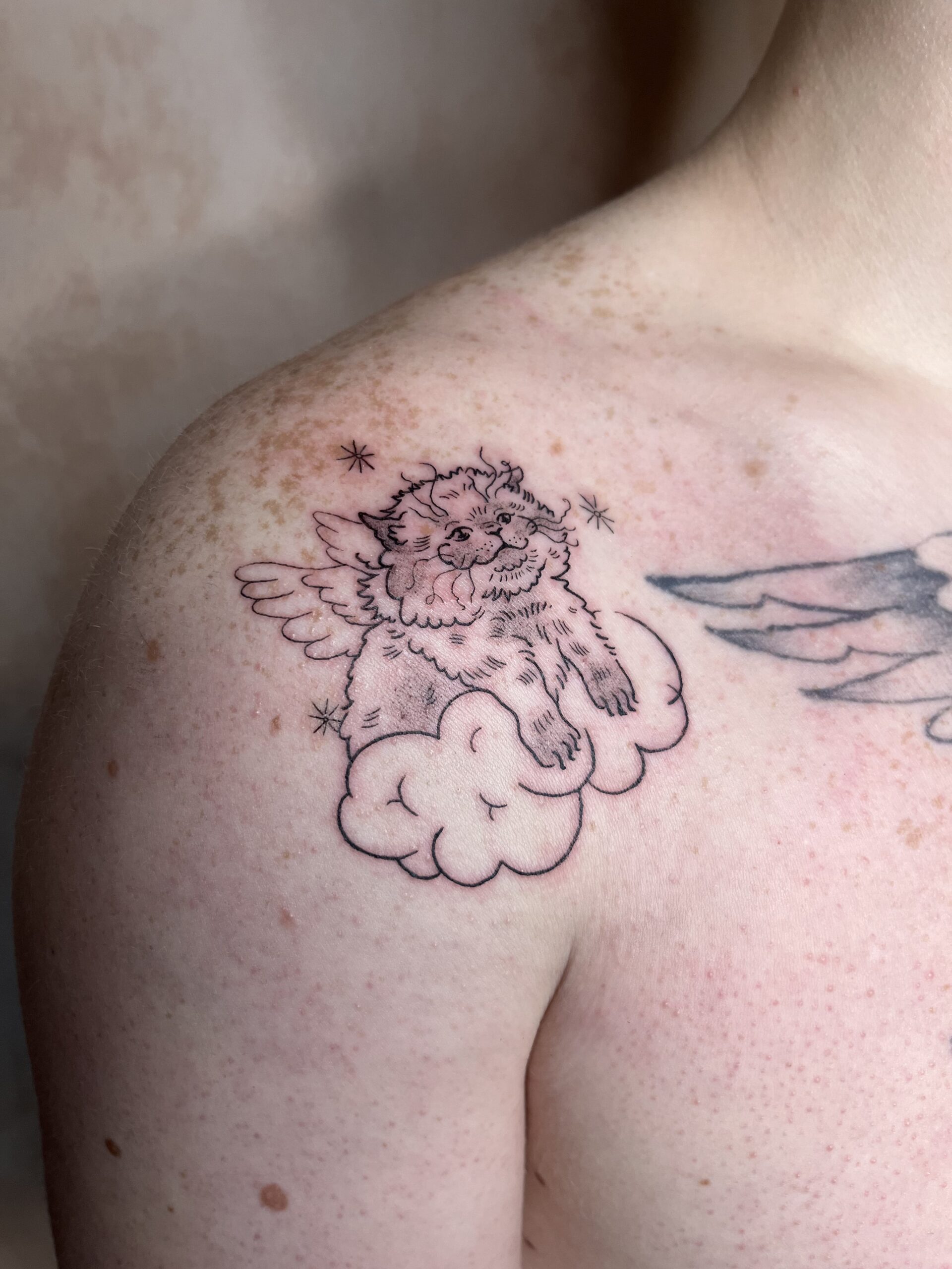 I’ve been tattooing since 2023 and constantly learning and growing in the craft. Deeply inspired by cats, storytelling, vintage illustrations, and anything that adds a touch of the surreal and joy to everyday moments. While my style leans toward illustrative and fine linework, I do love creating silly & sketchy animal designs. I’m excited to make something unique and charming just for you & also work on bigger projects.
